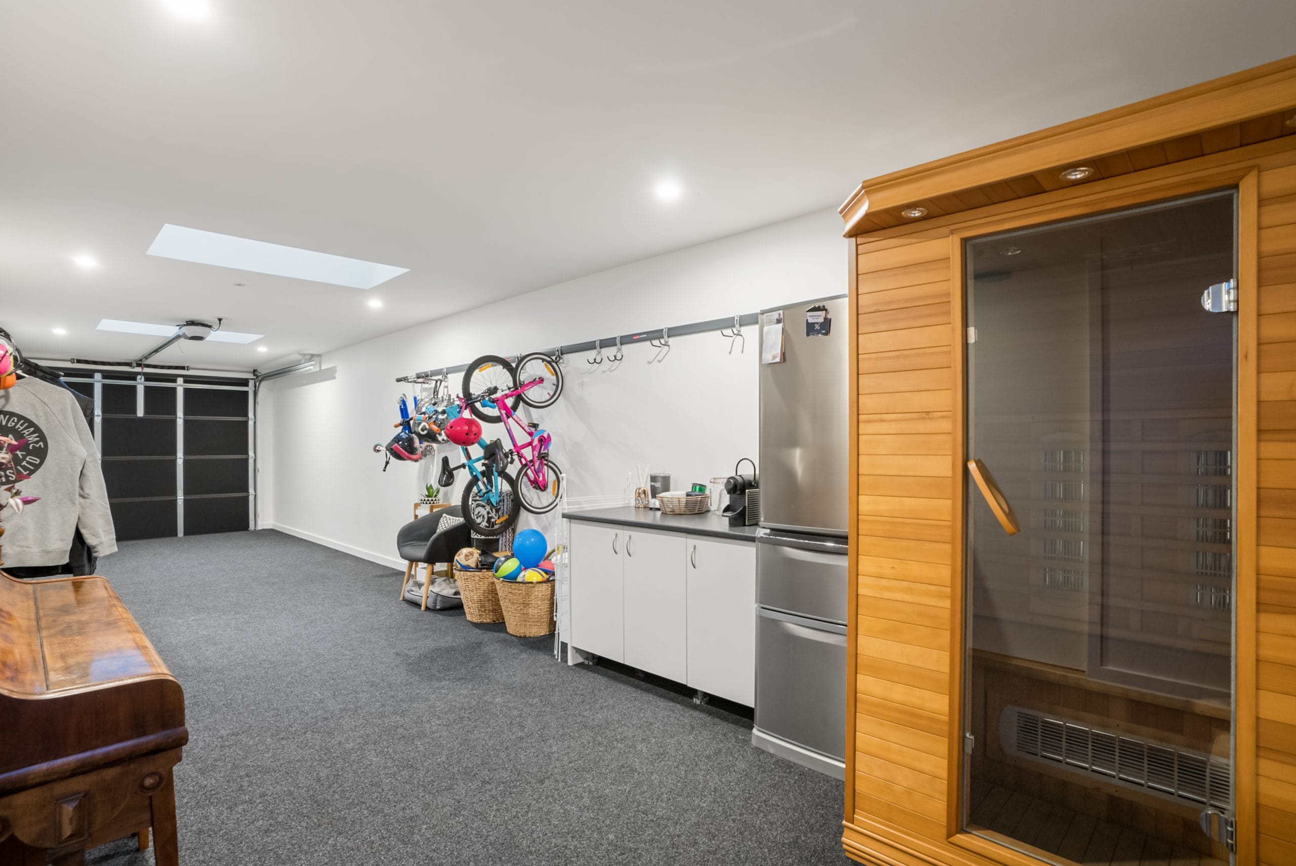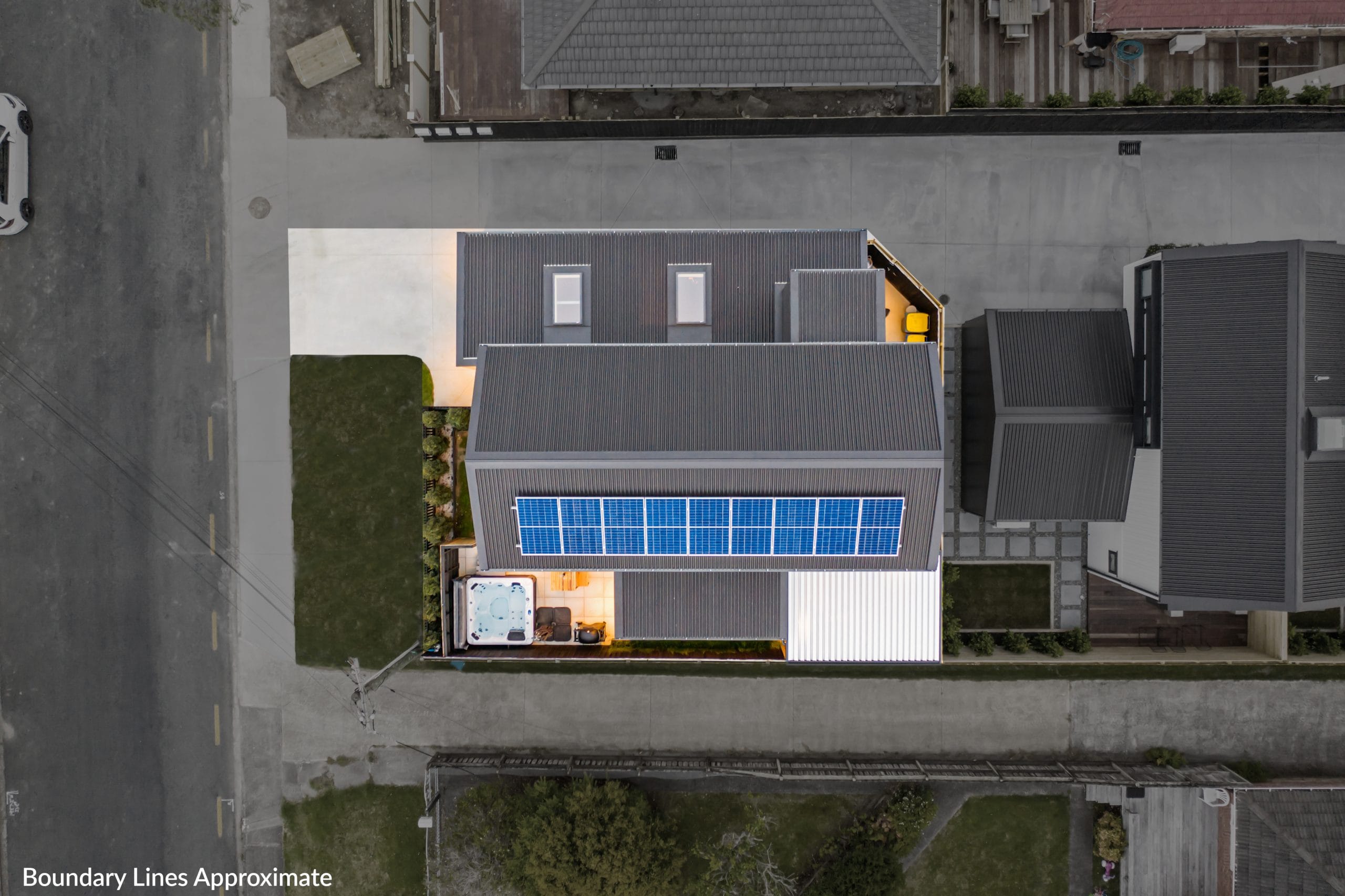 This two storied vertical cedar wood panelled home was designed with a 117m2 floor plan, offering ample living downstairs and three generous sized bedrooms upstairs. Designed to maximise a tight site, this home is cleverly thought out to utilise space, storage and light. Surrounded by all the essential mod cons this home was designed with three in ceiling heat pumps, air conditioning and central heating. The home also has ankle level sensor lighting in the garage, hallway and bathrooms.